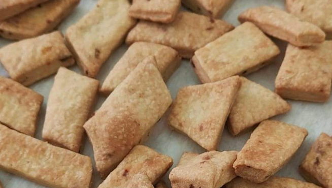 Étendre au rouleau, faites de petites galettes. Perso j'ai divisé la pâte en 2 pâtons étalé sur les deux plaques protégées par du papier cuisson et j'ai découpé avec une roue à pizza, car la pâte colle super bien au couteau